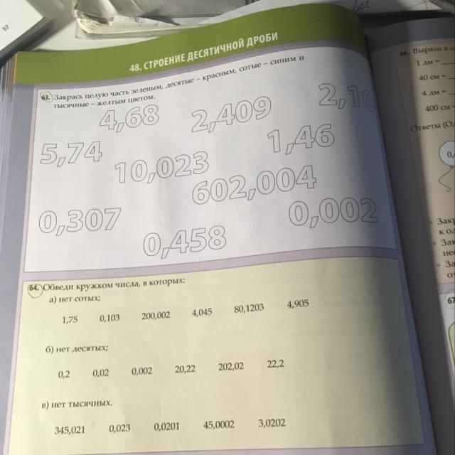Целой частью числа называется та цифра, которая стоит перед запятой. Первая цифра после запятой-десятые, вторая-сотые, третья-тысячные