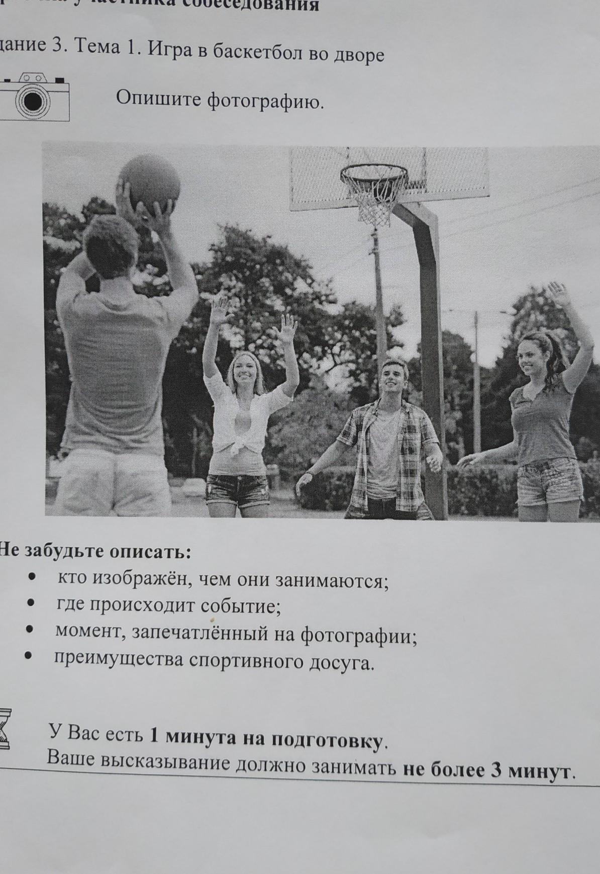 Четверо друзей, проводя время с пользой, играют в мяч на баскетбольной площадке. В зеленом уголке двора установлен щит с кольцом. Парень и две девушки, в удобной для прогулок и спорта одежде: рубашки, футболки, шорты. Трое готовятся парировать бросок, который выполняет один из молодых людей, стоящий к нам спиной. Фотограф сделал динамичный и эмоциональный кадр.