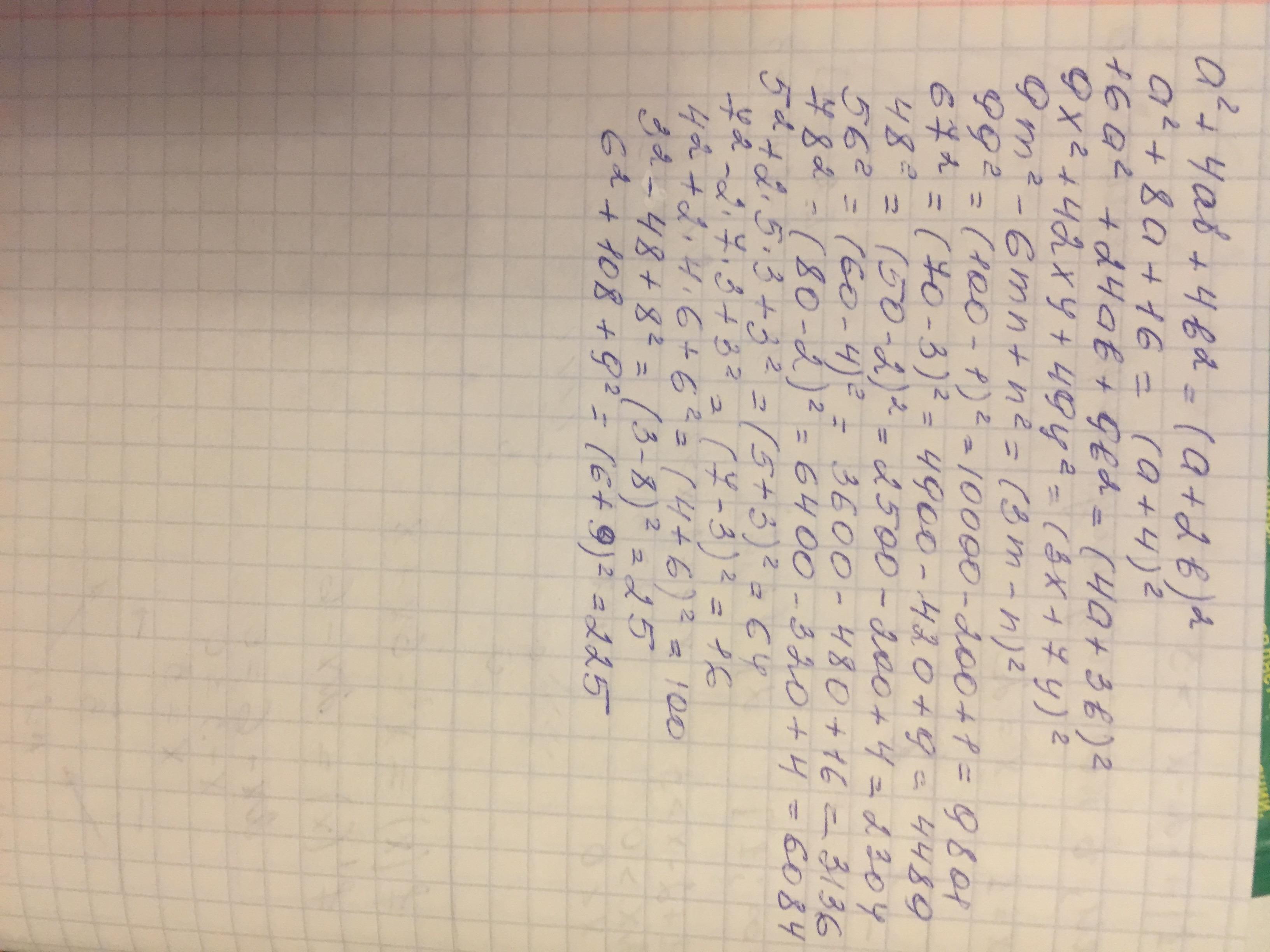 9. = (60 - 4)² = 60² - 2*60*4 + 4² = 3600 - 480 + 16 =3120 + 16 = 3136