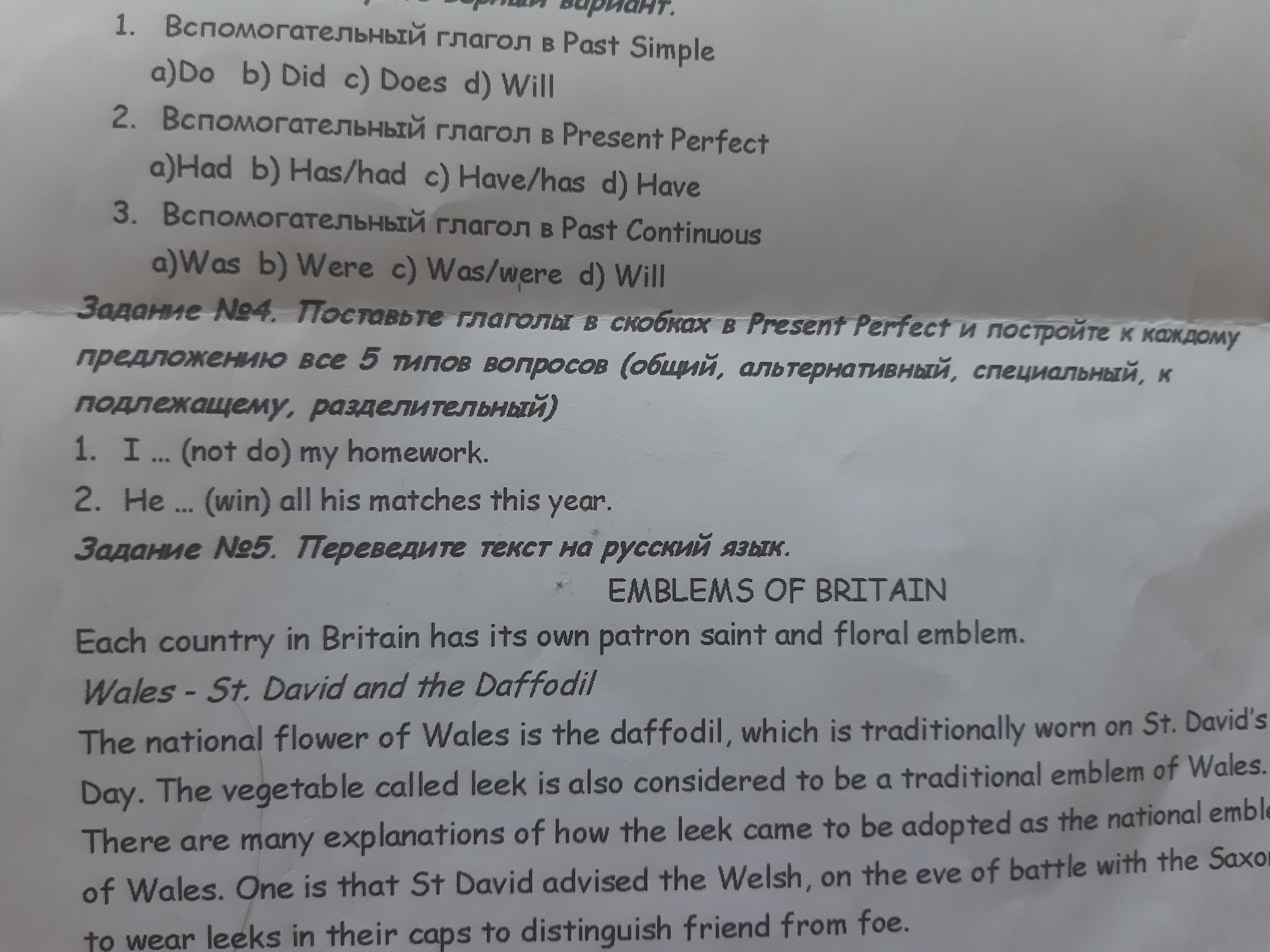 Типы вопросов соответствуют порядку в скобках. Удачи:)
