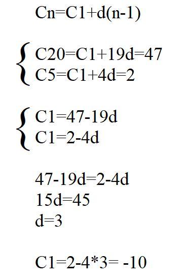 (Сn) - арифметическая прогрессия. Найдите с1, если с20=47, с5=2.