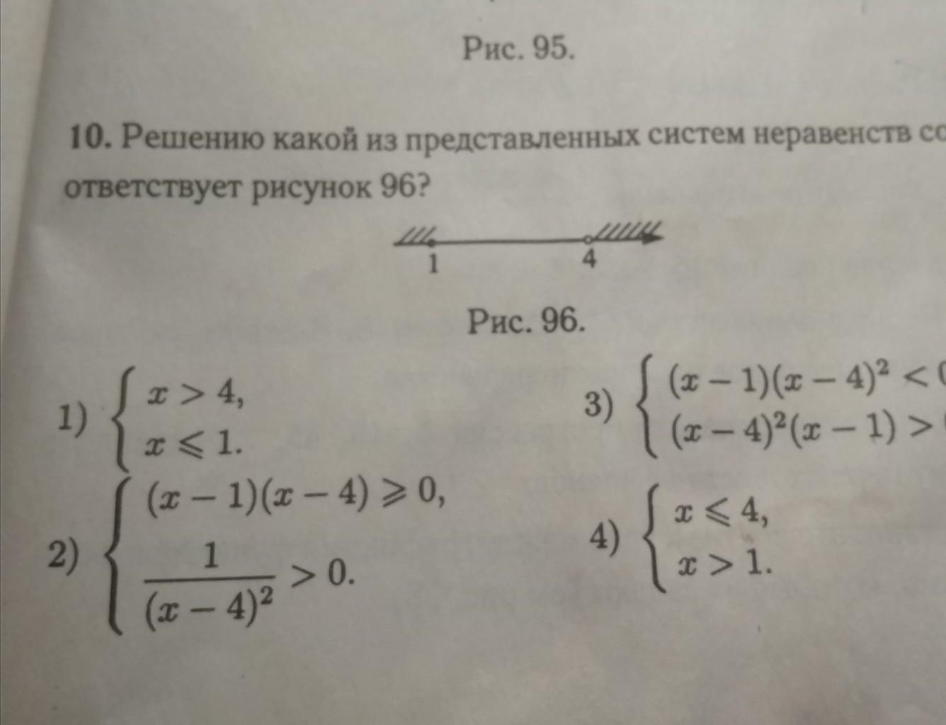 Ответ:№1 так как х>4 (точка выколота) и х≤1 (точка закрашена)