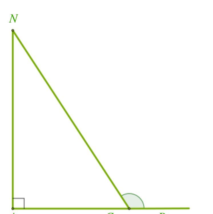 Дан прямоугольный треугольник ANC и внешний угол угла С.определи величины острых углов данного треугольника если NCP=101 градус