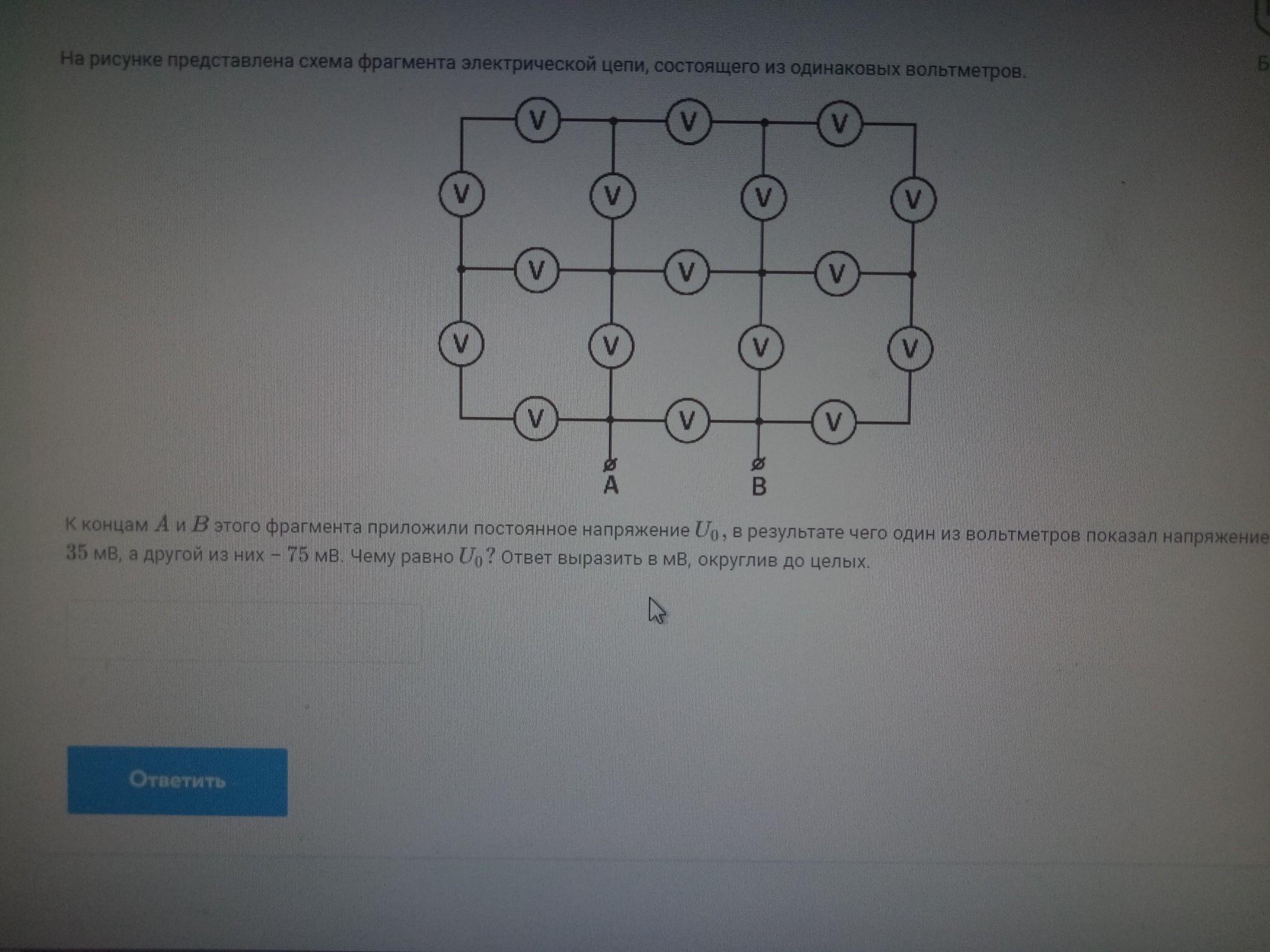 истинное, полное и максимальное напряжение показывает единственный вольтметр, непосредственно подключенный к клеммам. Остальные подключены по последовательно- параллельным цепям, и их внутренние сопротивления образуют делители, т.е. их показания меньше входного напряжения. Сколько конкретно - к вопросу не относится, главное - меньше 75мВ