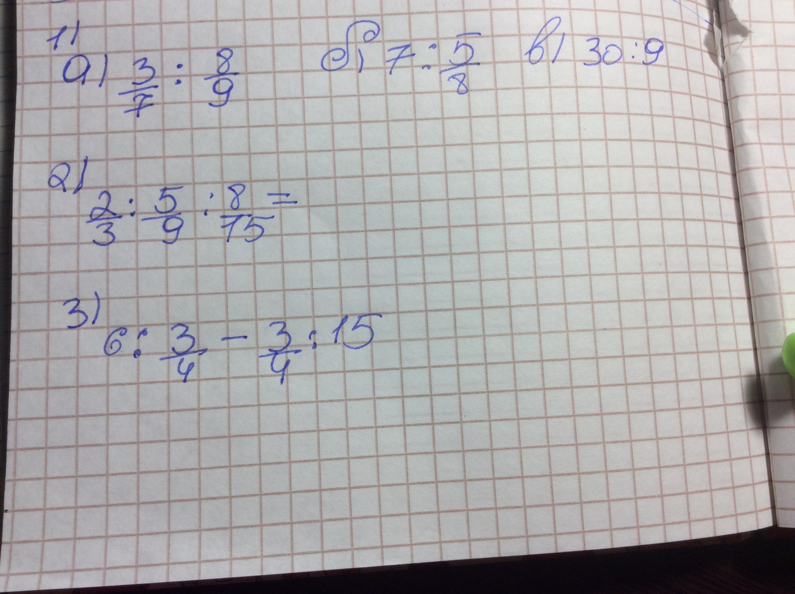 2) 2/3: 5/9:8/15= 2/3* 9/5*15/8=9/4=2,25