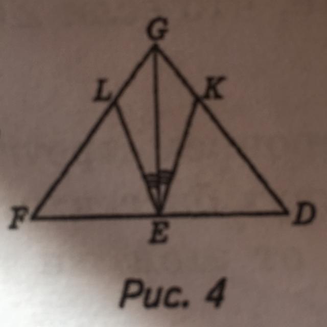 В треугольнике FGD проведена биссектриса GE угла FGD.Докажите равенство треугольников LEG и KEG ,если угол LEG=KEG(рис.4)