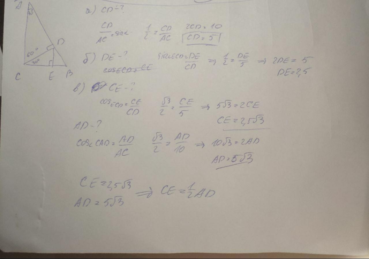 Для третьего пункта надо будет найти CE и AD, находится через косинус углов DCE и CAD соответственно.