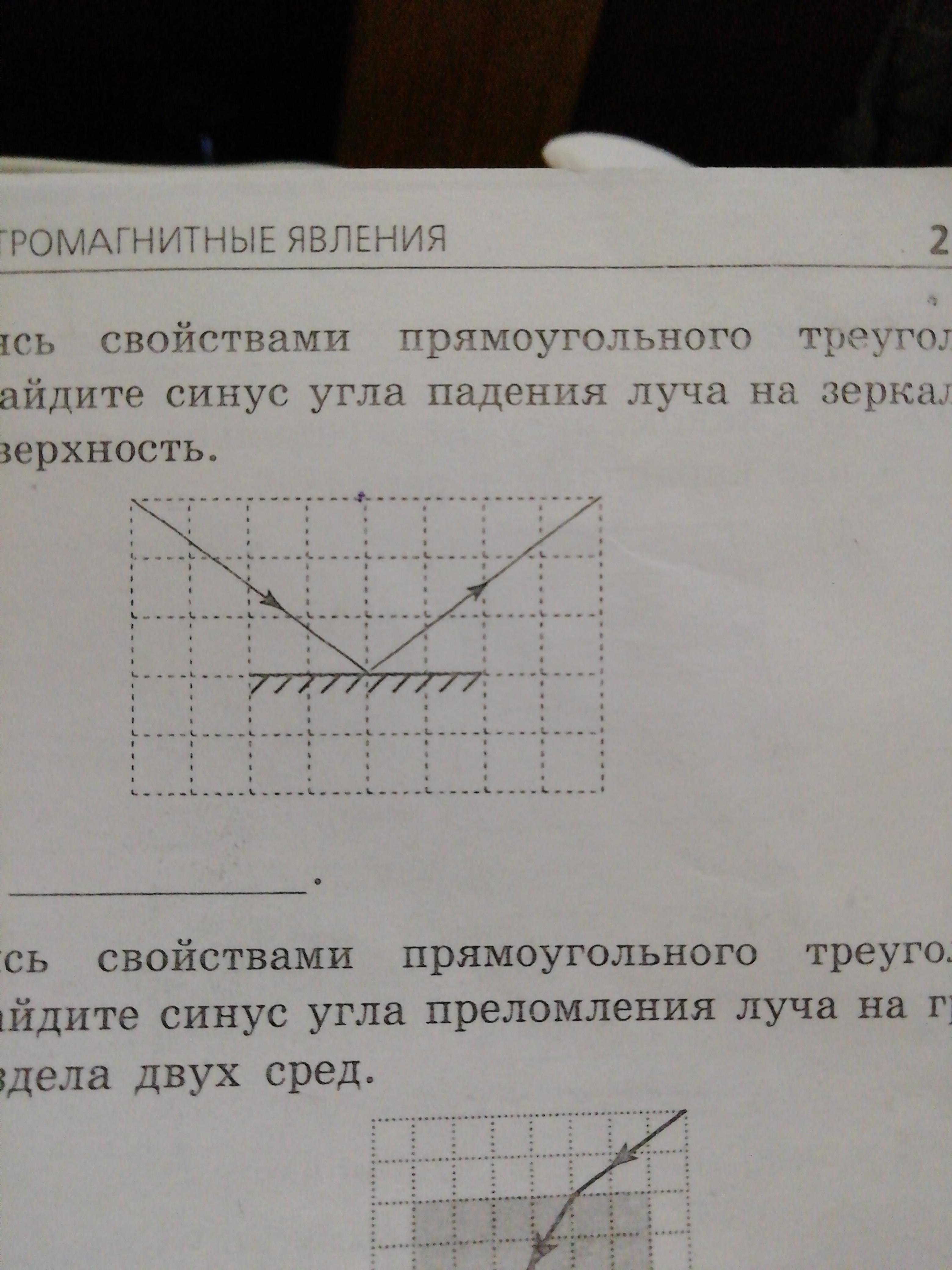 Пользуясь свойствами прямоугольного треугольника найдите синус угла падения луча на зеркальную поверхность