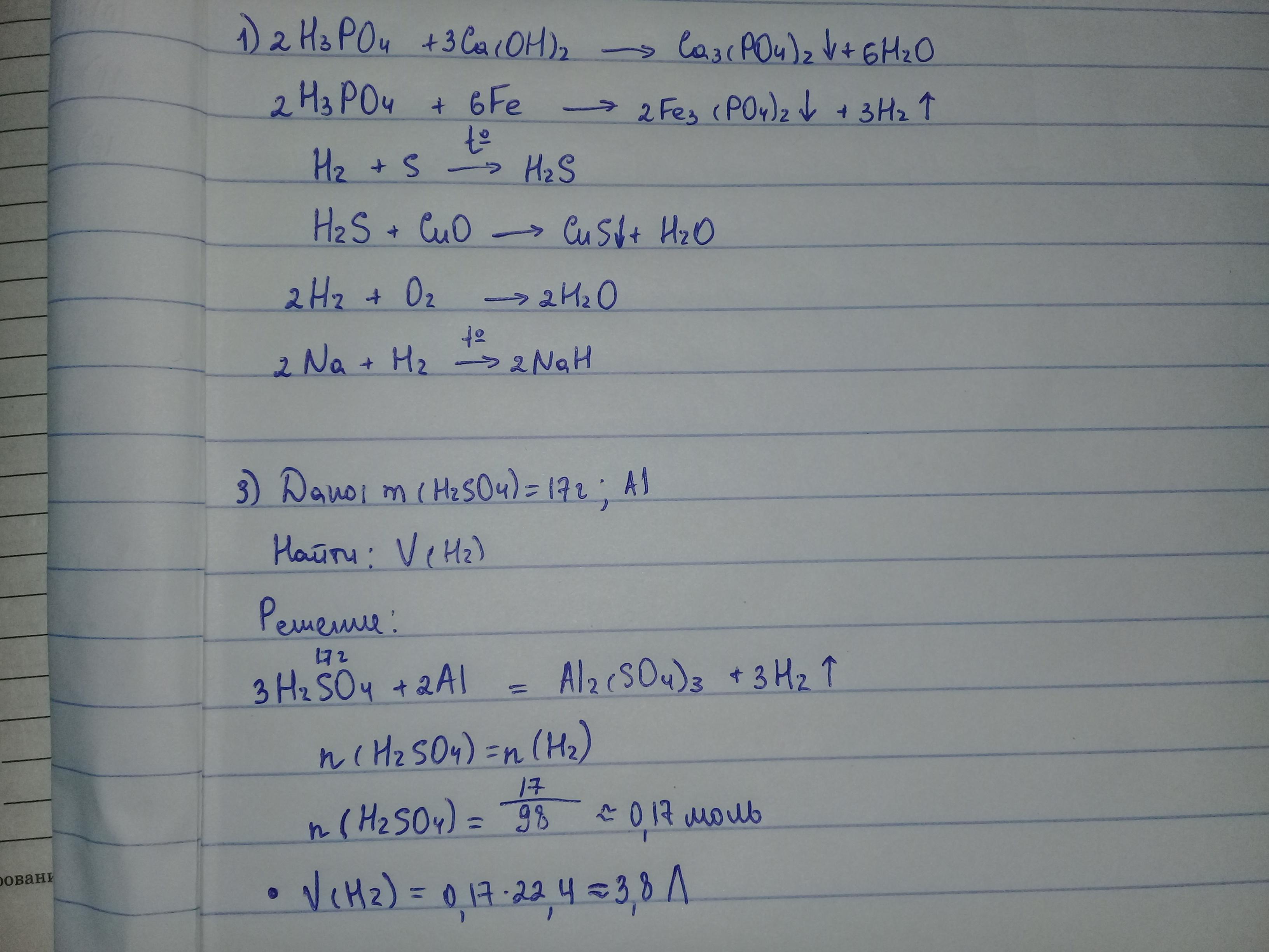 3) определить обьем,выделившегося водорода при взаимодействия 17гр серной кислоты с алюминием?