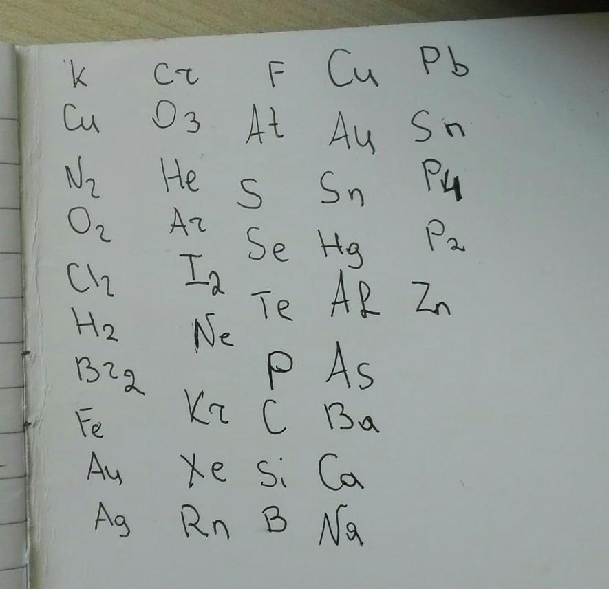 из предложенных букв латинского алфавита и чисел составь максимально возможное число формул простых веществ:0,1,2,3,4,5,6,7,8,A,B,C,F,H,N,O,P,S,e,i,a,l,r,g.Запишиих название