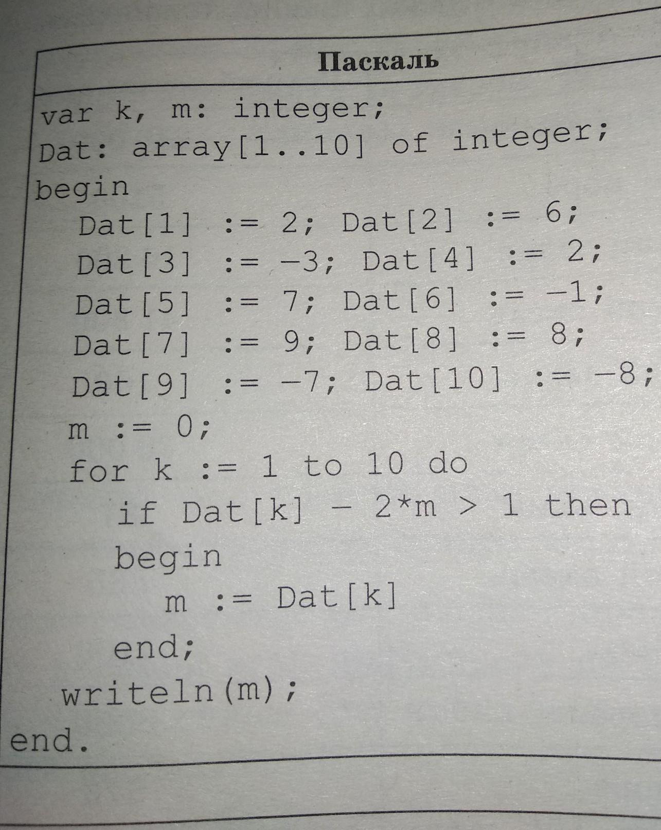 в цикле for сравниваем Если элемент массива под номером 1 (т.е. число 2) минус 2*m>1 то m равна текущему элементу массива.