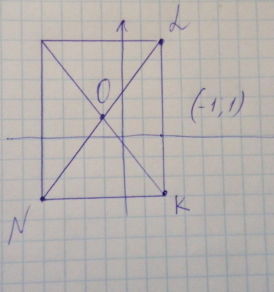 На координатной полоски отметьте точку К(2:-3),L(2:5),N(-4:-3) вершины прямоугольника.Запишите координаты точки пересечения диагоналей прямоугольника.