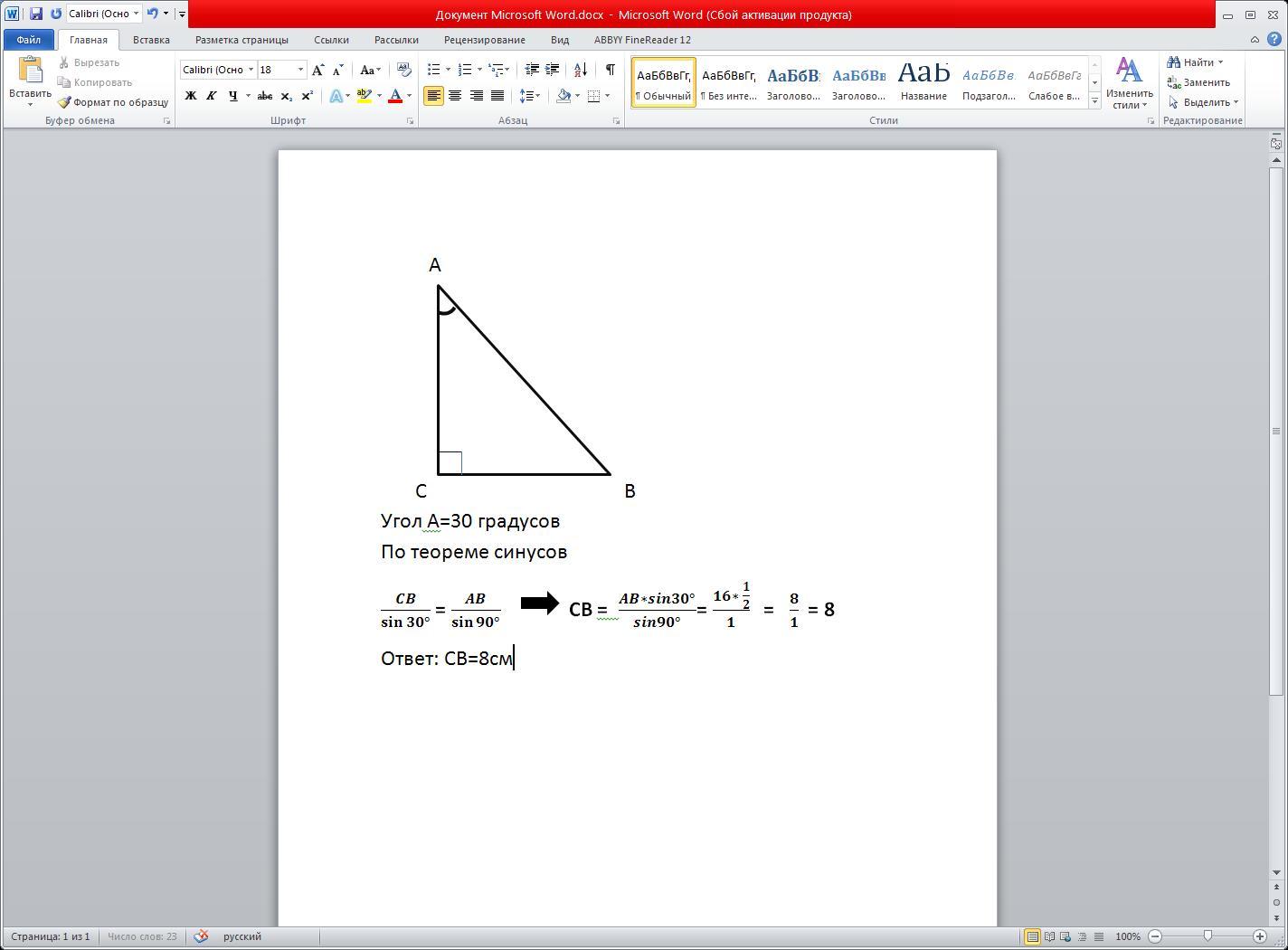 треугольнике АВС гипотенуза АВ равна 16 см, угол А равен 30градусов