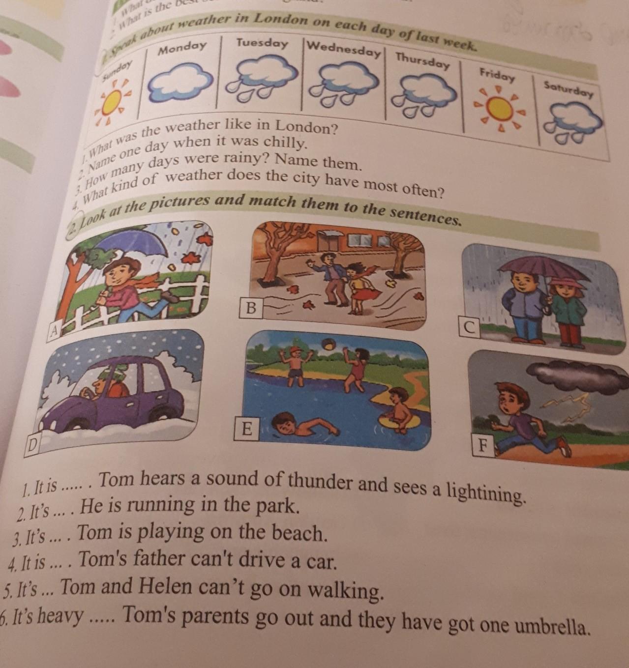 1) On Sunday and Friday it was sunny in London.