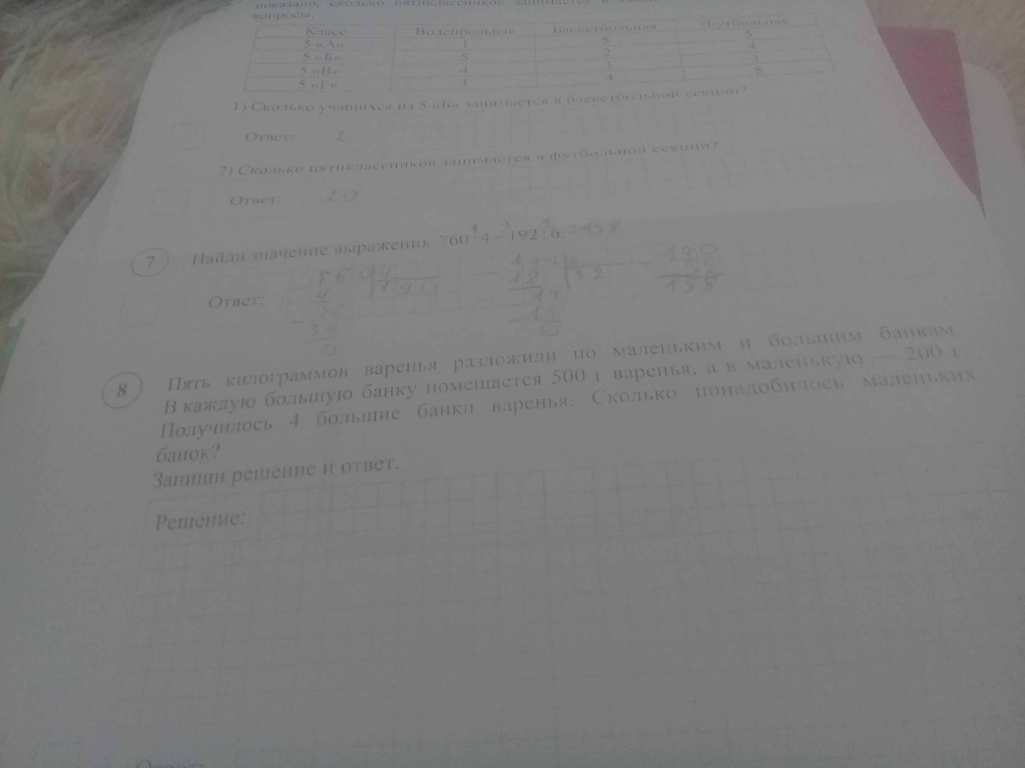 1)5кг=5000(г) 2)500*4=2000(г) 3)5000-2000=3000 4)3000 разделить на 200