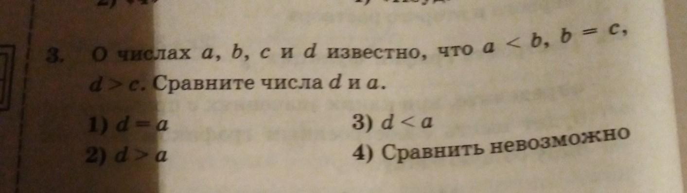 Можно я без особого объяснения? Просто ответ будет d > a. Так как b = с, d будет больше b. Также, b больше a. А значит, d будет больше a.