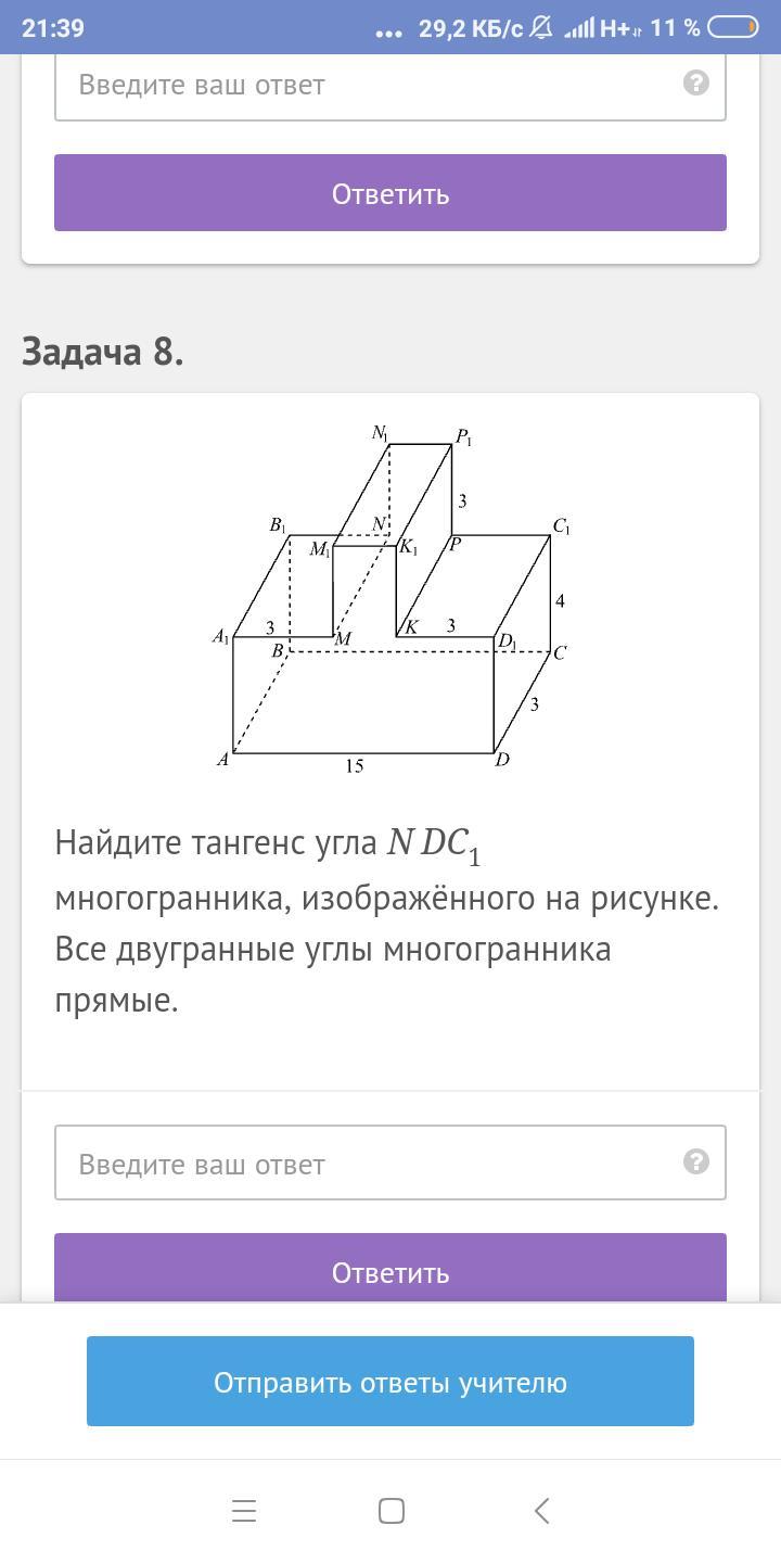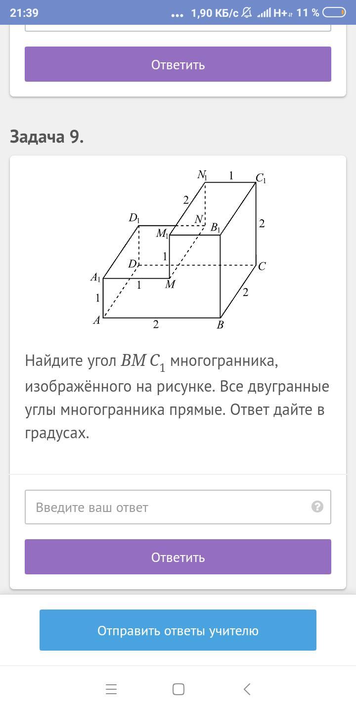 ∠NDC1 = arc cos (5/13) = 1,1760 радиан или 67,380 градуса.