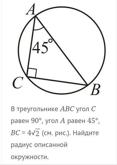 Если угол А =45°, значит угол В =45°, поскольку сумма всех углов 180° ( 180-90-45).