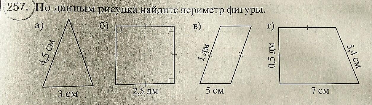 г) 5,4 см + 5 см × 2 + 7 см = 22,4 см