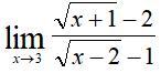 limlimits _{x to 3}frac{sqrt{x+1}-2}{sqrt{x-2}-1}=limlimits_{x to 3}frac{(sqrt{x+1}-2)(sqrt{x+1}+2); (sqrt{x-2}+1)}{(sqrt{x-2}-1)(sqrt{x-2}+1); (sqrt{x+1}+2)}=\\\=limlimits_{x to 3}frac{(x+1-4); (sqrt{x-2}+1)}{(x-2-1); (sqrt{x+1}+2)}=limlimits _{x to 3}frac{(x-3); (sqrt{x-2}+1)}{(x-3); (sqrt{x+1}+2)}=\\\=limlimits_{x to 3}frac{sqrt{x-2}+1}{sqrt{x+1}+2}=frac{1+1}{2+2}=frac{2}{4}=frac{1}{2}