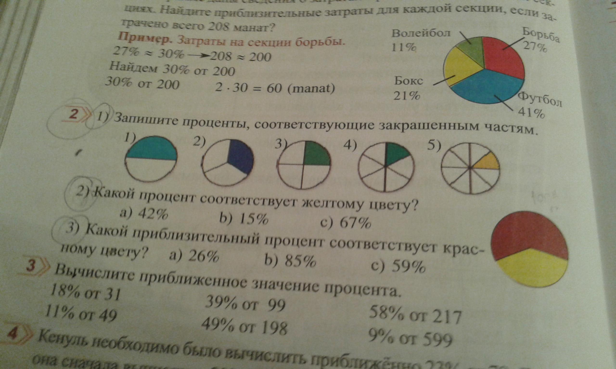1)запишите проценты,соответствующие закрашенным частям?