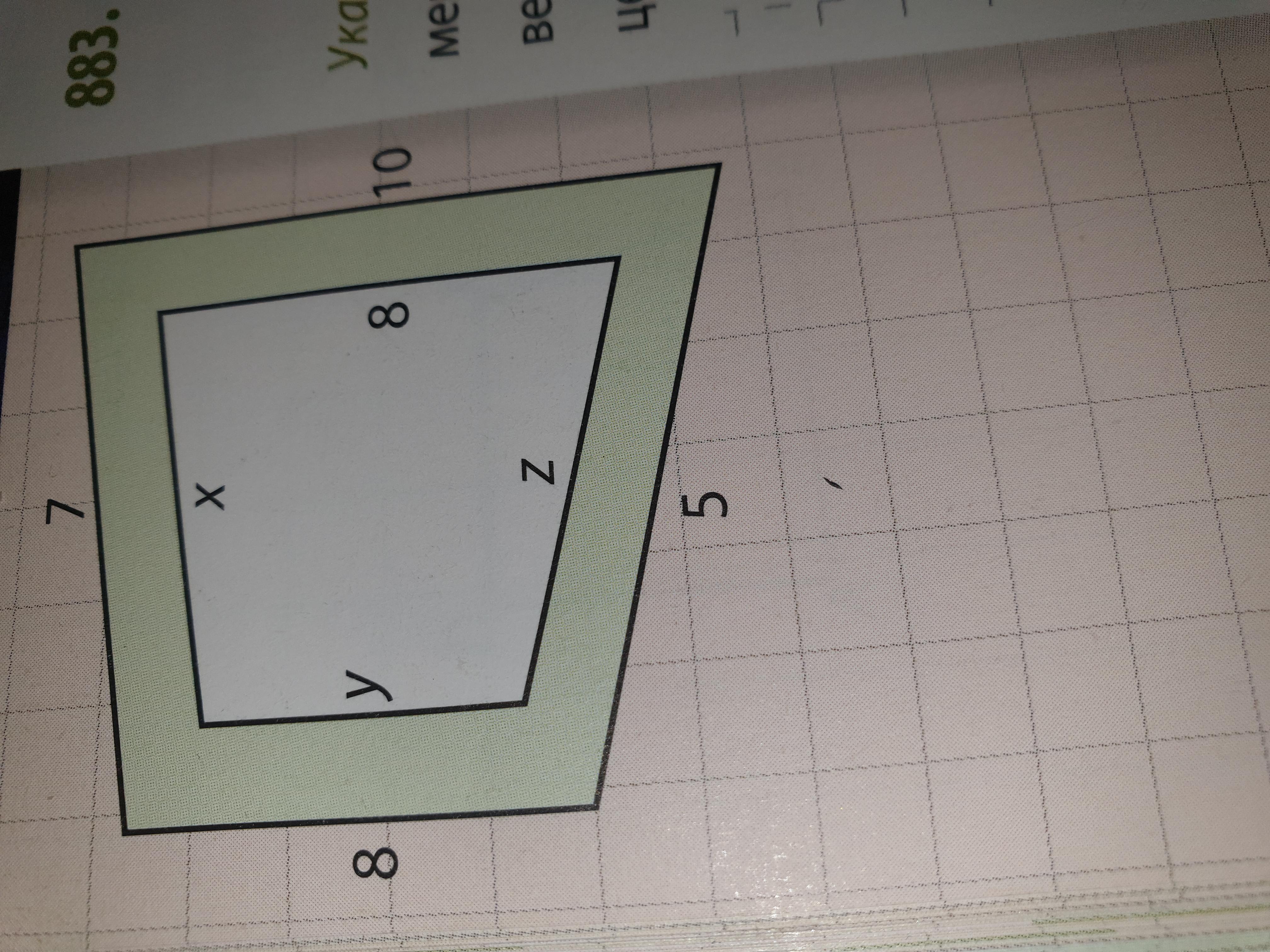 Из четырехугольного куска картона, размеры которого даны на рисунке, вырезана подобная этому куску фигура. Нaйди x,y и z