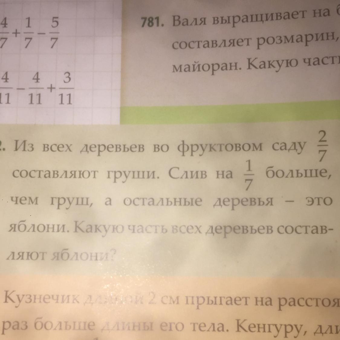 2/7 + 3/7 = 5/7часть это груши и сливы вместе