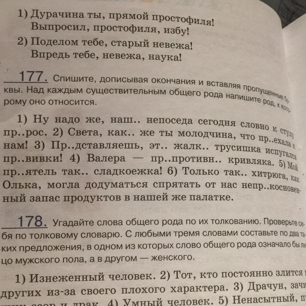 Спишите дописывая окончания и вставляя пропущенные буквы . Над каждым существительным общего рода напишите род , к которому оно относится