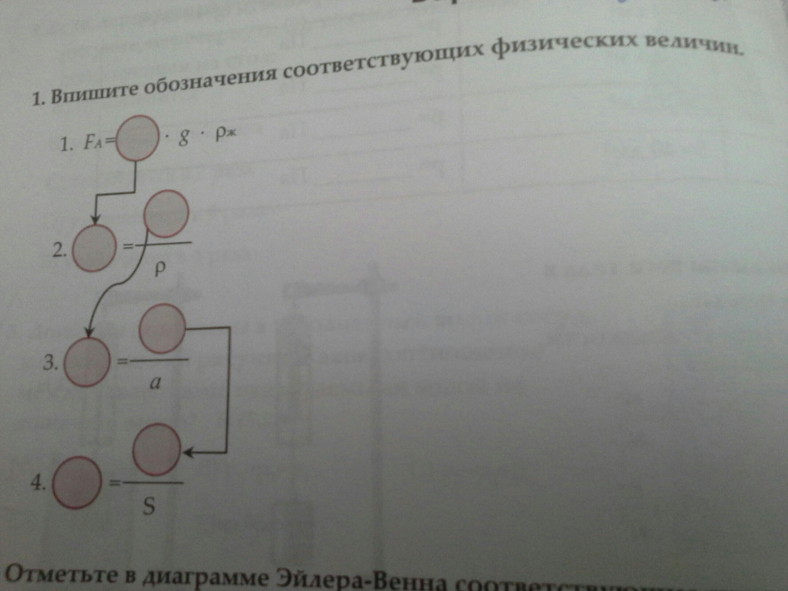 1. Fa = V × g × p (в кружке Объём)