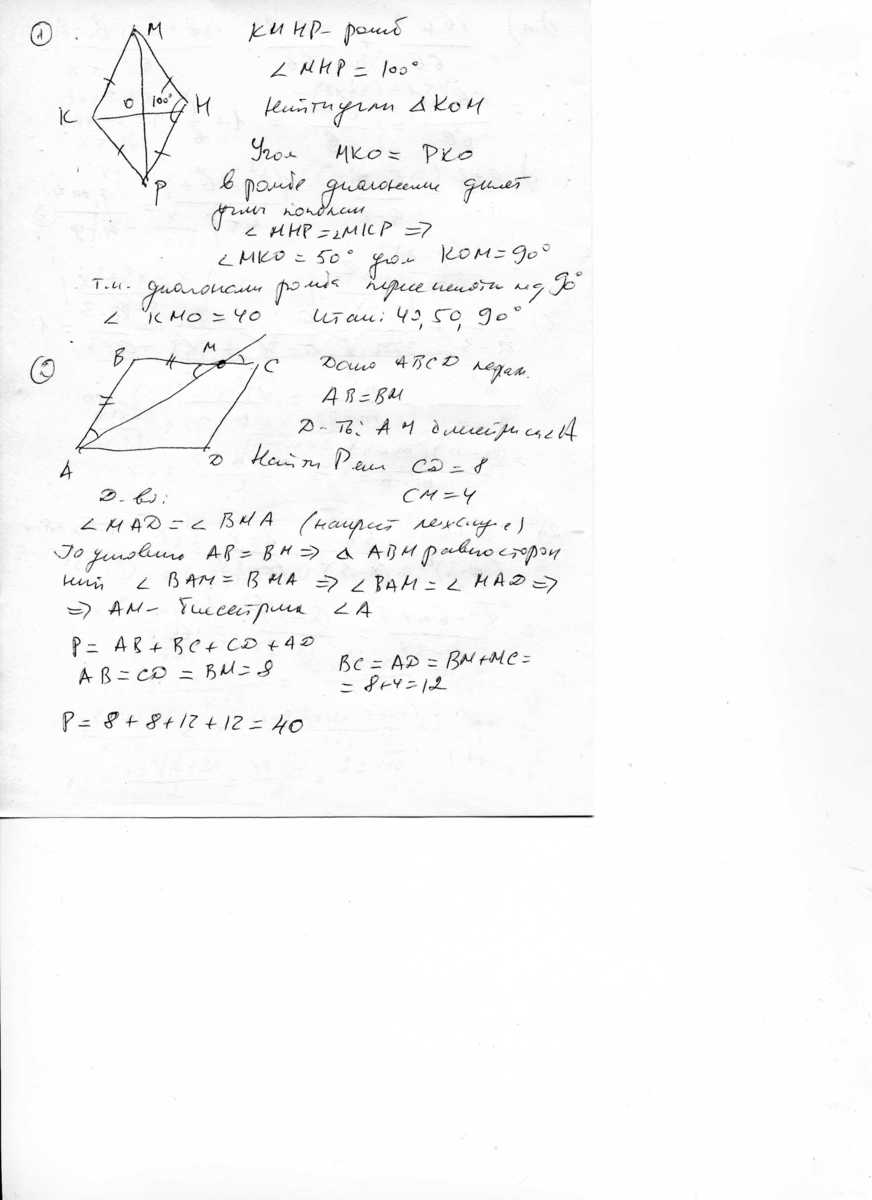 1) Так как диагонали ромба делят углы его пополам и пересекаются под