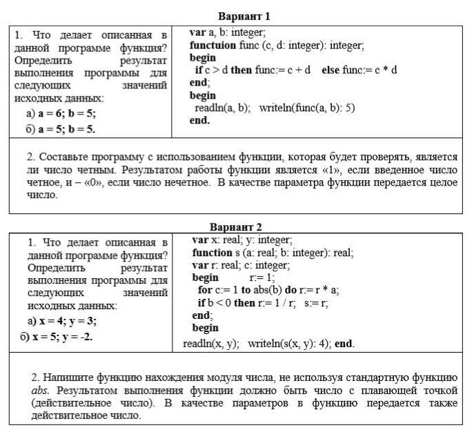 1) Функция сравнивает два числа и если первое число больше второго, то находит их сумму, в противном случае находит их произведение.