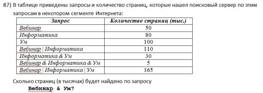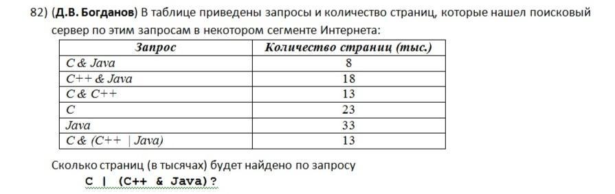 В таблице приведены запросы и количество страниц, которые нашел поисковый сервер по этим запросам в некотором сегменте Интернета: