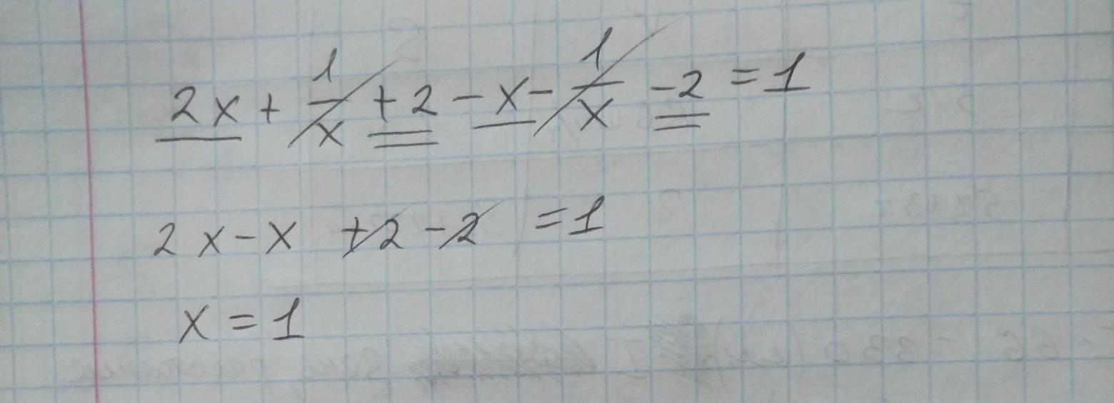 Так как 1/x и -1/x противоположные, то они взаимно уничтожаться. Так же и с 2 и -2.