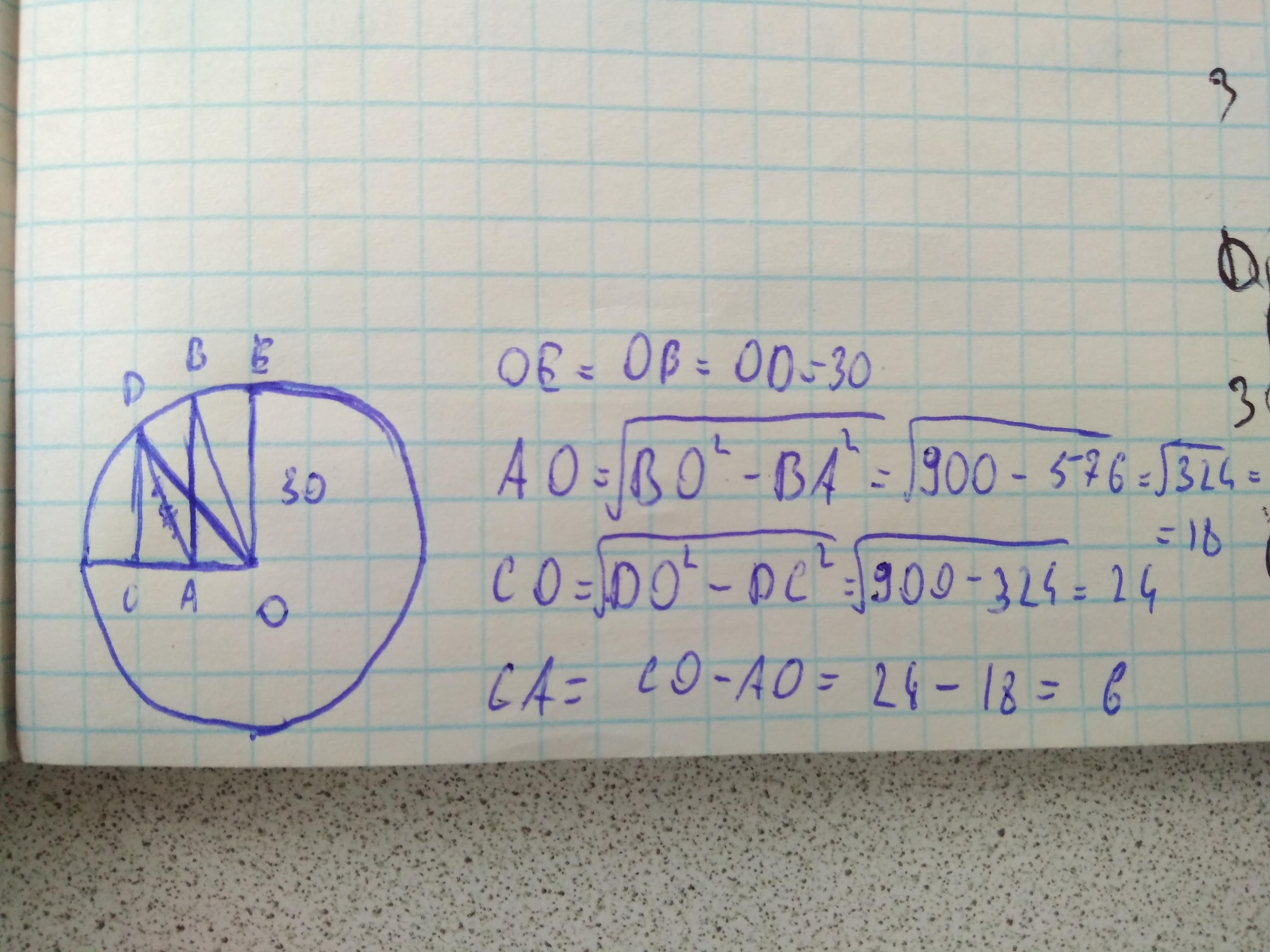 Радиус двух параллельных селений сферы 18 см и 24 см. Они расположены по одну сторону от центра сферы. Радиус сферы равен 30 см, найдите расстояние между сечениями