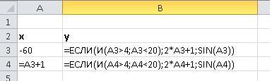 Если х принадлежит интервалу (4;20), вычислить значение функции по формуле