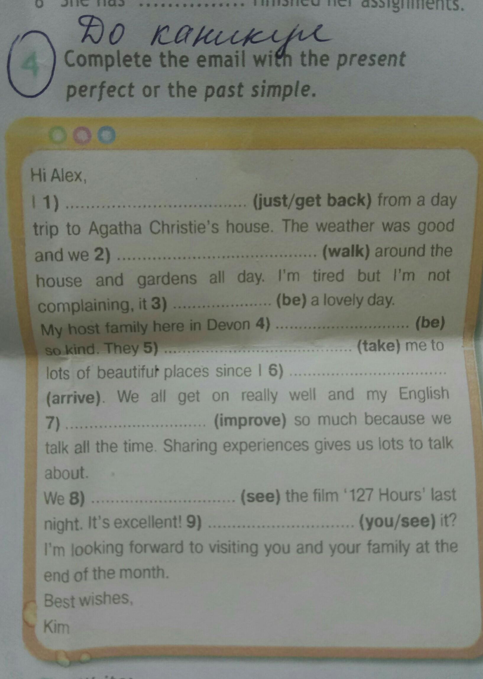 1. I've just got back;