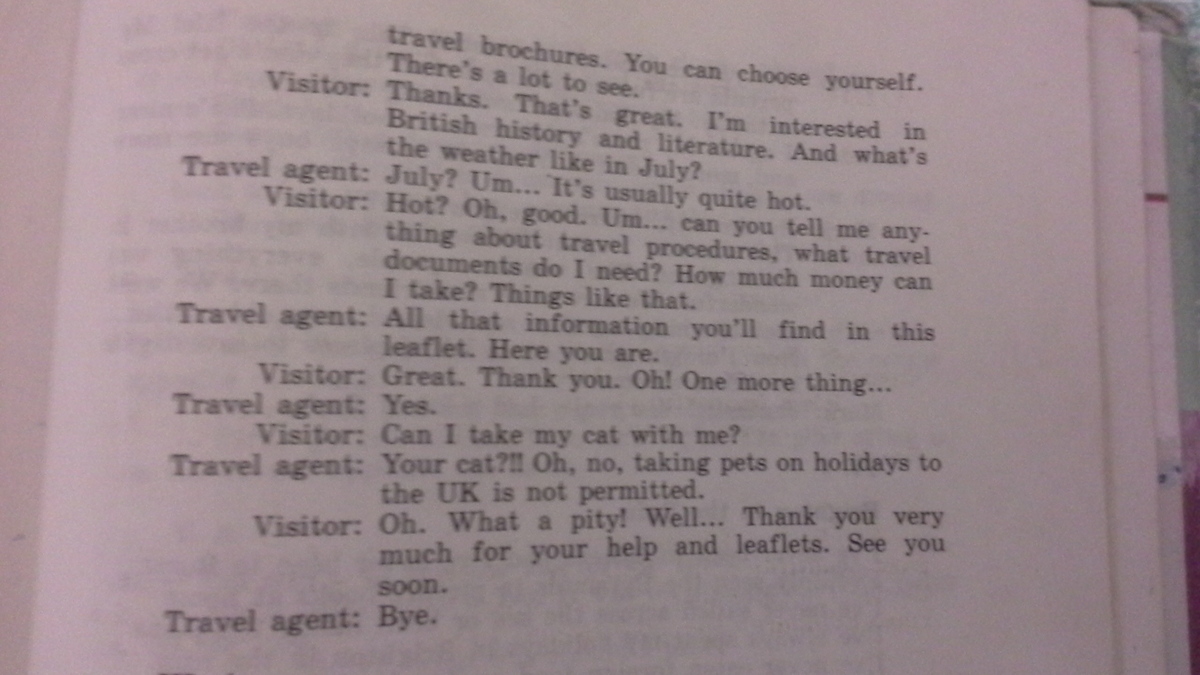 -Жарко?О, хорошо.Эм..Не могли бы Вы мне сказать о процессе путешествия, какие документы мне нужны? Сколько денег следует взять и т.д.?