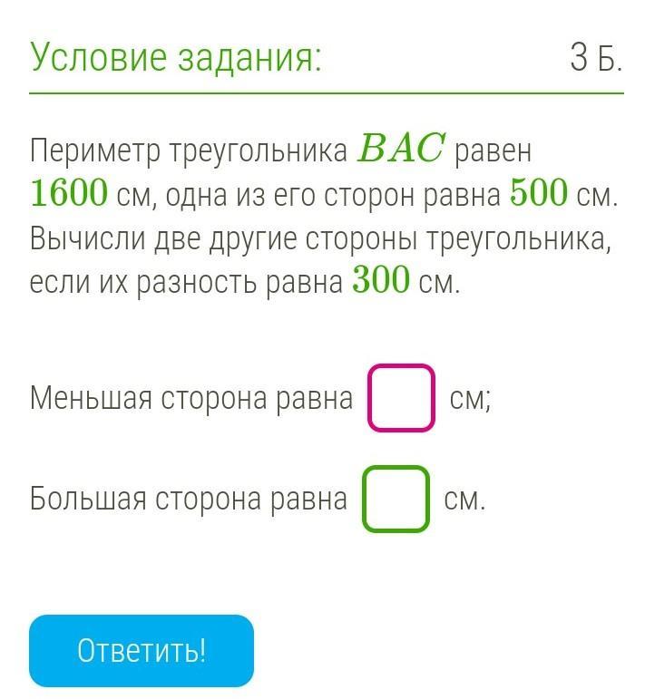 большая сторона равна 700 см