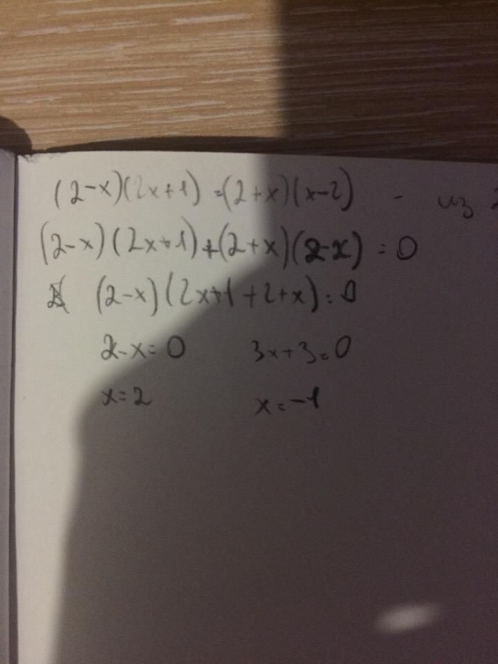 выносишь минус из правой скобки и все переносишь в левую часть, а затем выносишь (2-х) как общий множитель