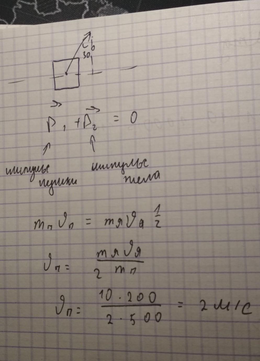 кг с начальной скоростью 720 км / ч относительно Земли под углом 600 к горизонту. Какая скорость отката пушки? Ответ дать в СИ с точностью до десятых. Трением пренебречь. Формат записи ответа: число без размерности