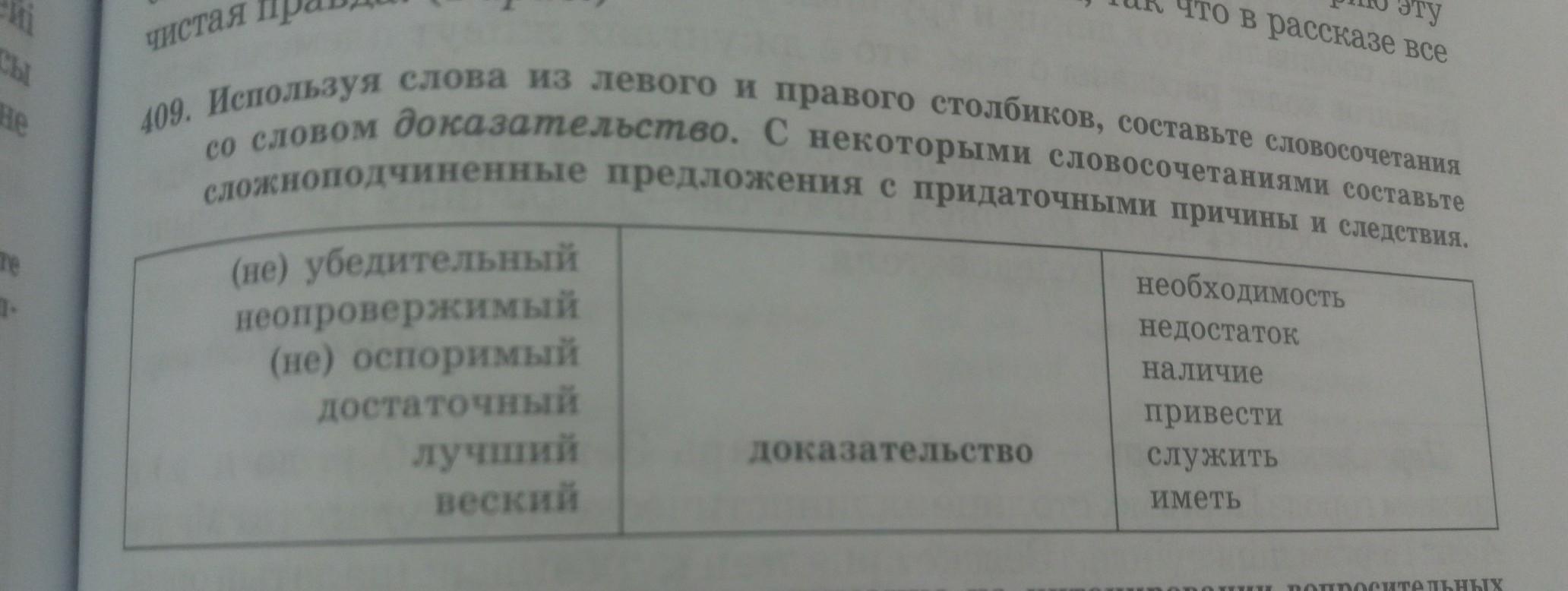 Используя слова левого и правого столбиков составьте словосочетания со словом доказательство