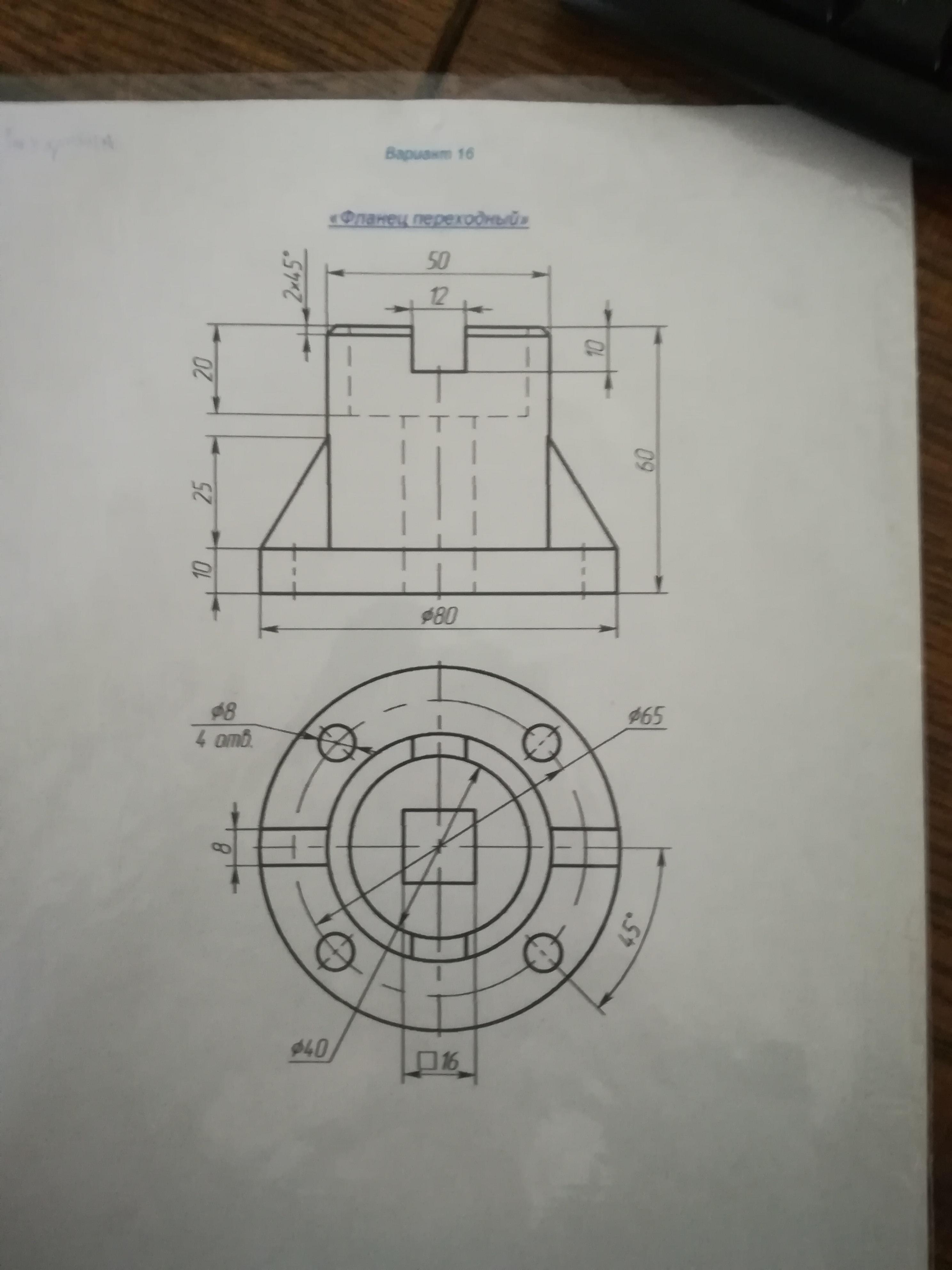 На втором чертеже на главном виде - добавить значок диаметра (∅50), а на виде сверху добавила окружность - от фаски 2х45°