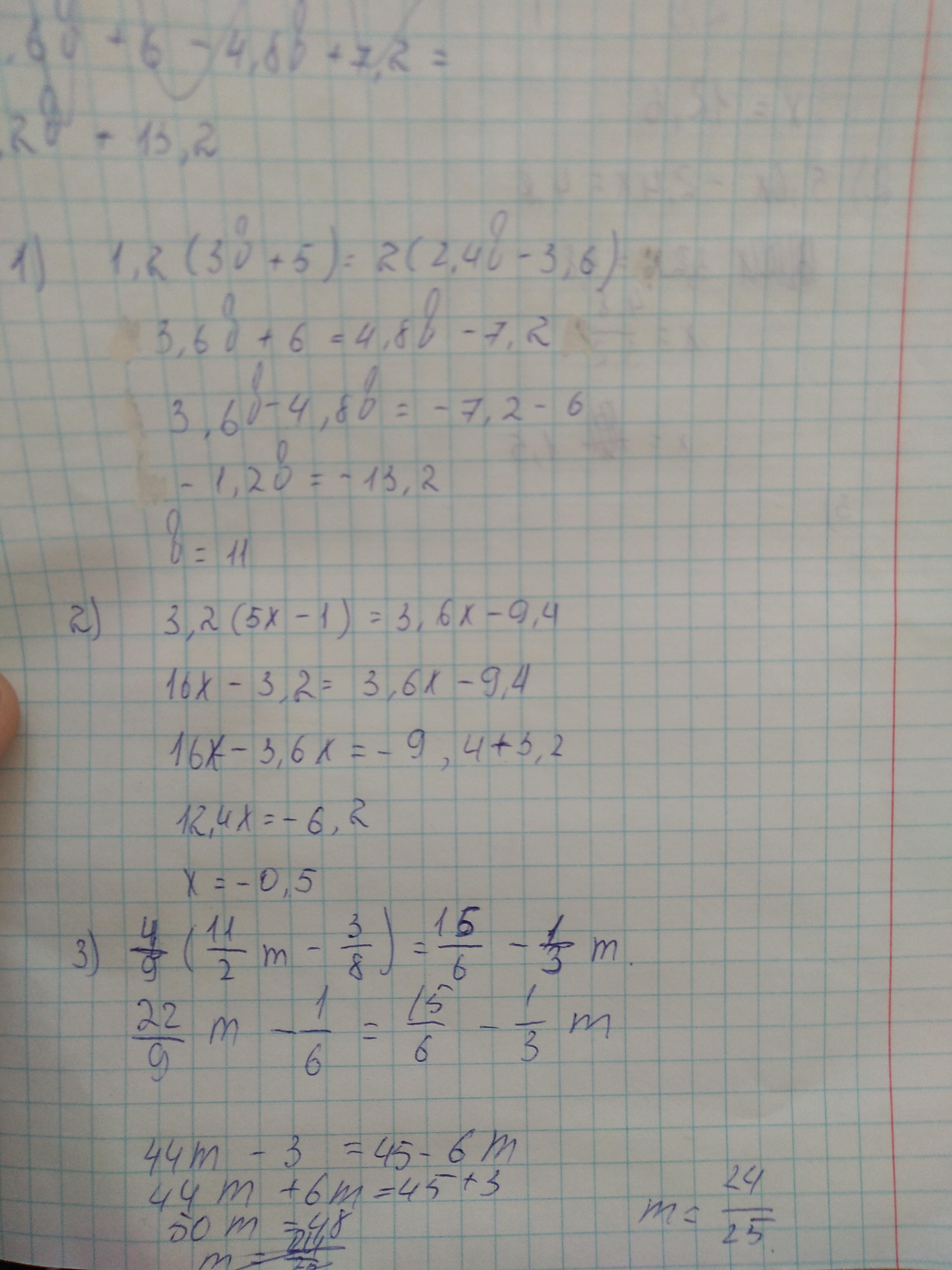 3) 4/9( 1 1/2m - 3/8) = 1 5/6 - 1 1/3 m