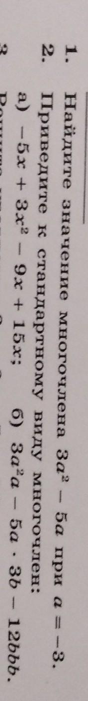 No1. 3a^2-5a=3×(-3^2)-5(-3)=3×9+15=27+15=42. No2. 1) -5x+3x^2-9x+15x=-14x+3x^2+15x=3x^2+x.