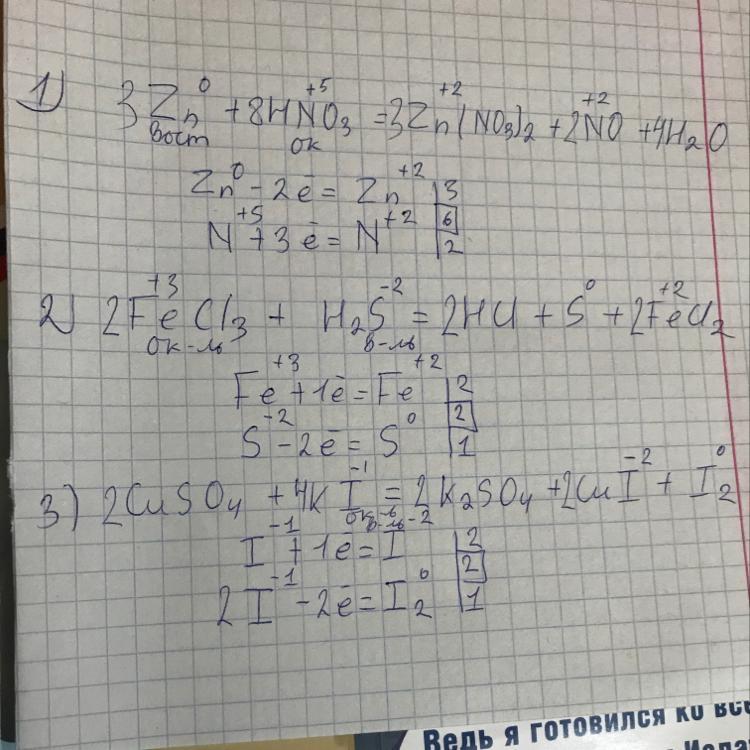Помогите пожалуйста решить. Расставить коэффициенты методом электронного баланса.