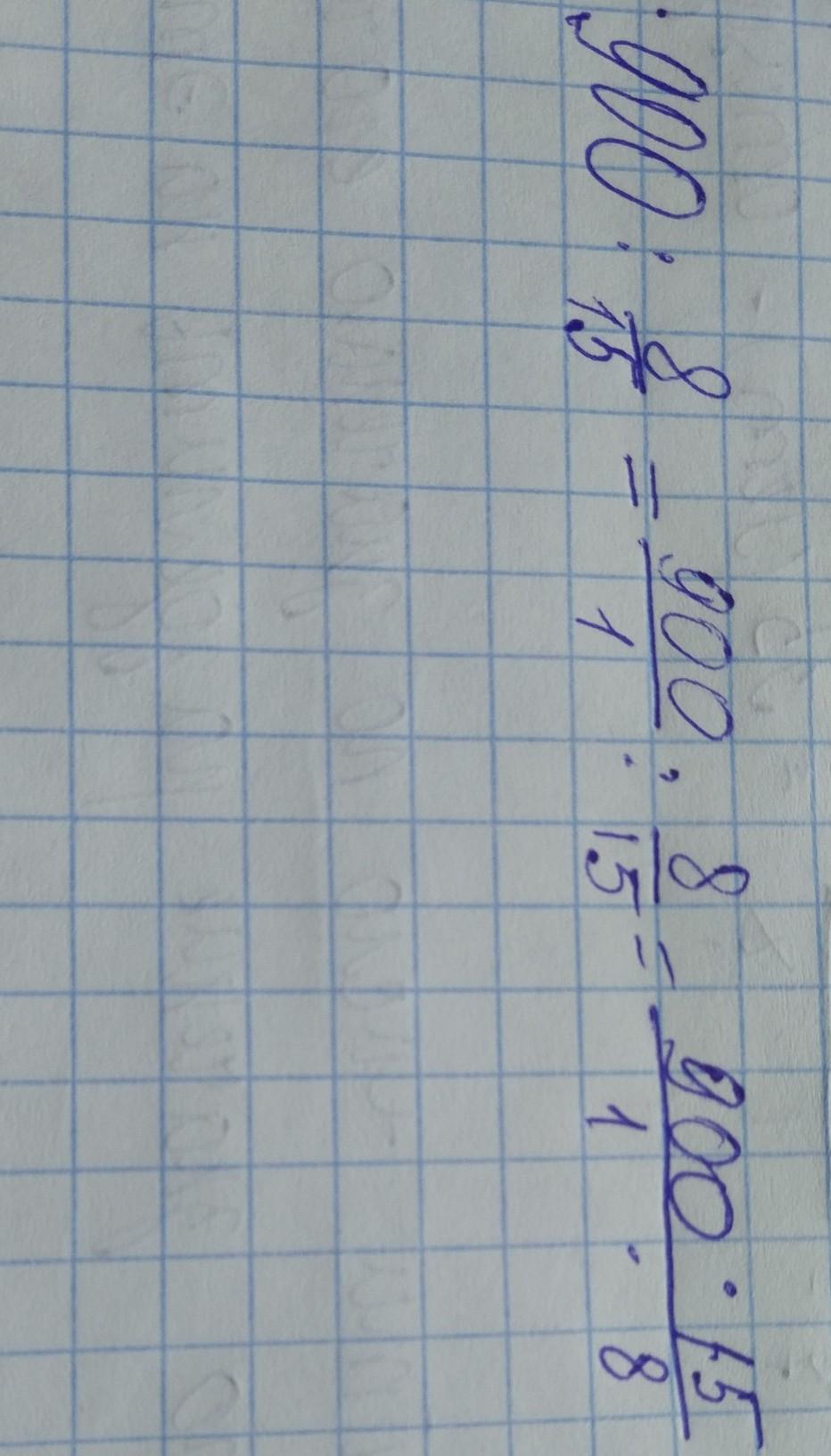 900 : 8/15 = 900/1 : 8/15 = 900/1 х 15/8 = ( числитель умножаем на числитель.знаменатель на знаменатель) и получается 13500/8 = 168 ( целых ) и дробью 1/2