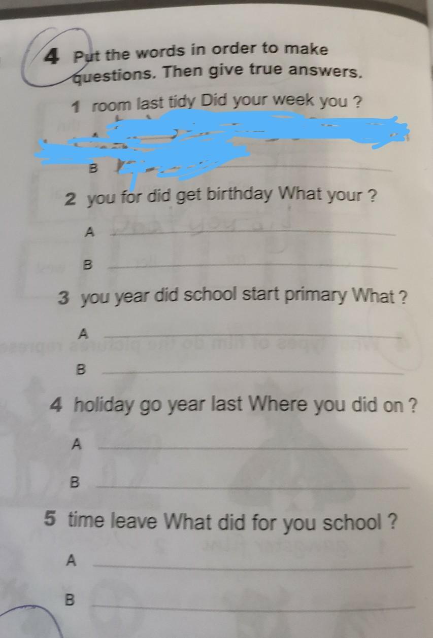 1. Did you tidy your room last week?