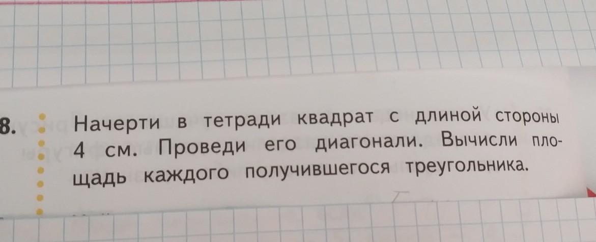если провести диоганали то получится 4 одинаковых треугольника:
