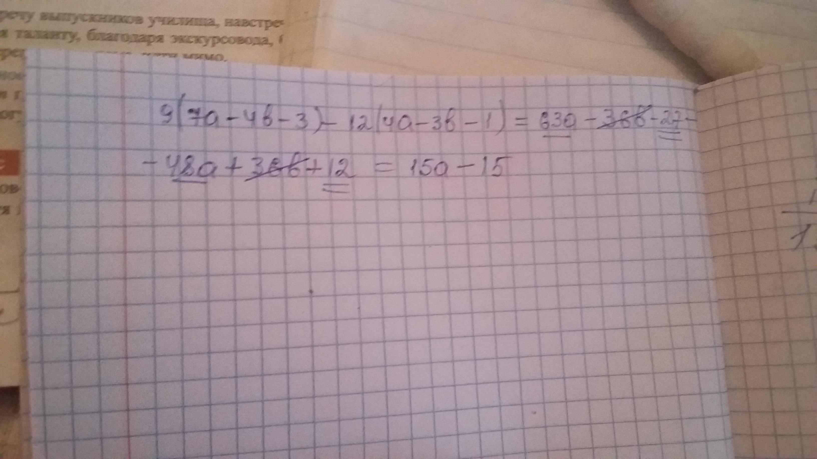 Помогите пожалуйста решить 9(7а - 4b - 3) - 12(4а - 3b - 1) и покажите пожалуйста как вы решали))