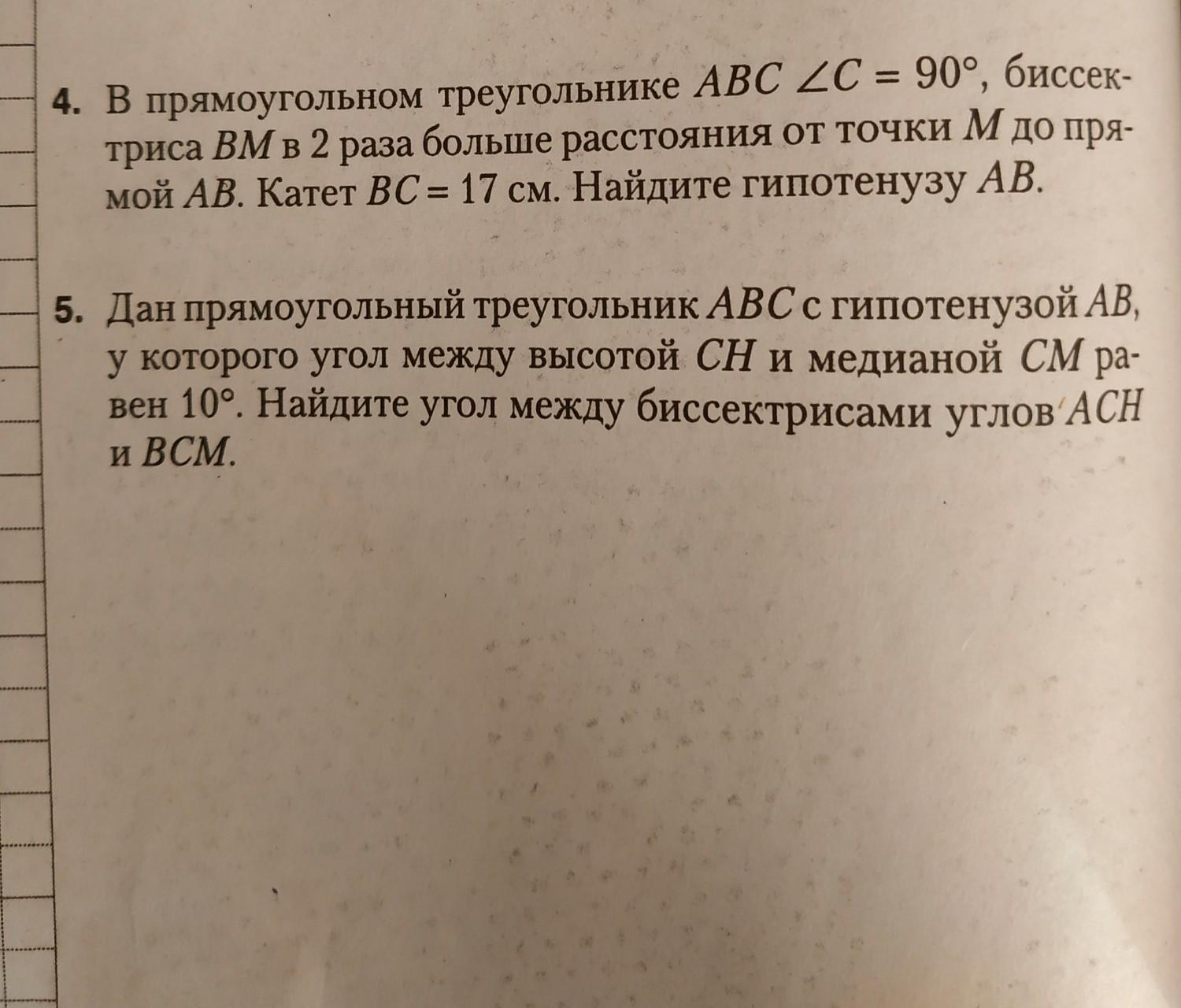 проведем МН перпендикуляна АВ. Тогда МН расстояние от точки М до прямой АВ. Если ВМ в два раза больше МН, то угол МВН = 30 градусам, за свойствами катета против угла 30 градусов. Тогда угол СВА = 60 градусам. Отсюда АВ = СВсоs угла СВА. АВ=17*2=34см